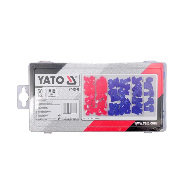 Набор электрических быстрых соединений для кабелей автомобиля Yato модель 06868 предлагает идеальное решение для простого и эффективного подключения проводов автомобиля. Этот набор содержит 50 штук и состоит из быстрых клеммных зажимов двух цветов — красного и синего, которые подходят для наиболее распространённых диаметров проводов.