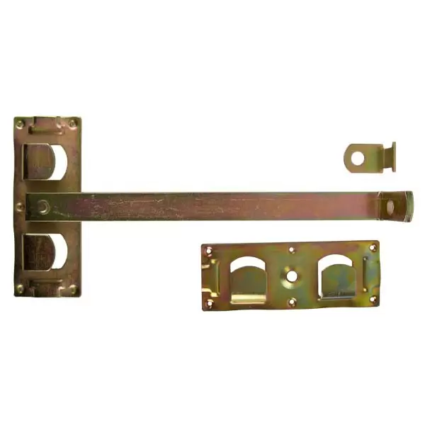 Воротная задвижка — это прочный стальной механизм, который надёжно запирает ворота, двери и другие крупные конструкции. Покрытие жёлтым цинком не только защищает от коррозии, но и делает задвижку хорошо заметной. Это отличный выбор для обеспечения безопасности на частных, коммерческих и промышленных объектах.