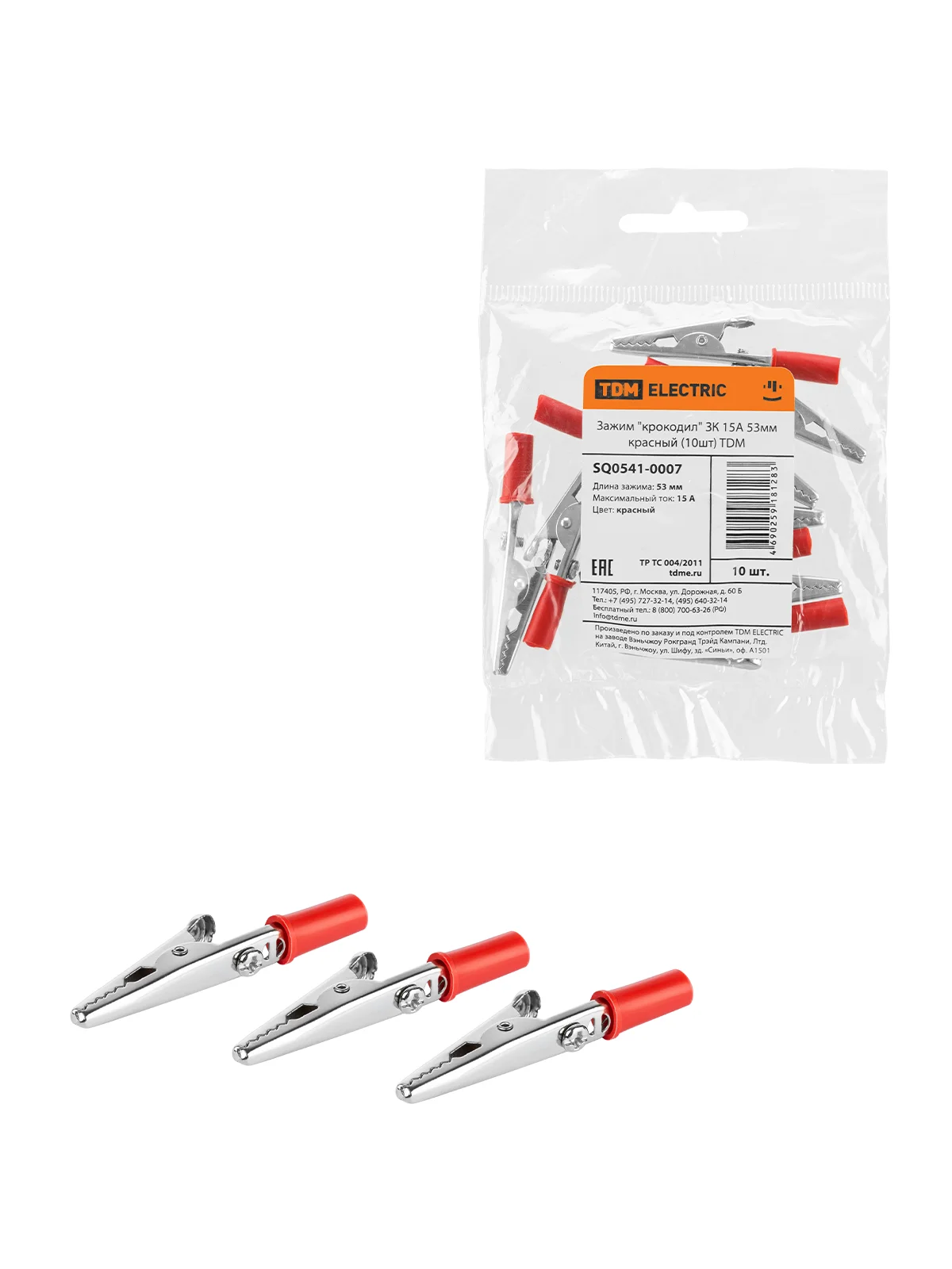 Зажим крокодил 15A 53мм красный TDM