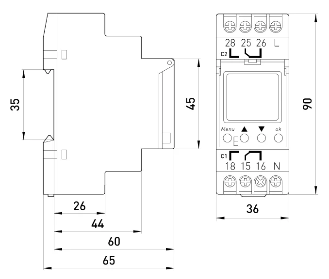 - Монтаж на DIN-рейку 35мм