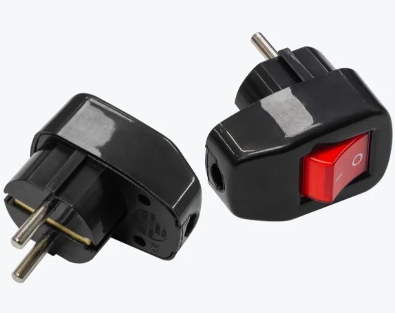 -----Вилка угловая с заземлением и выключателем 16A черная 79 148 00 AY-KA