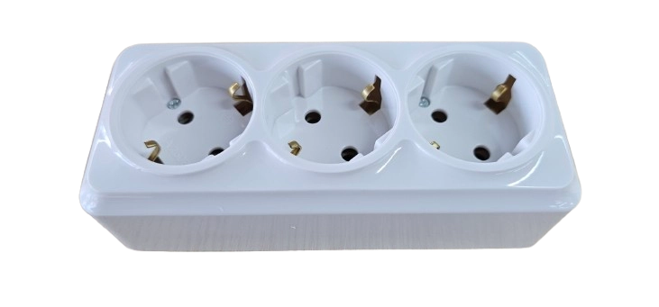 -----Розеточный блок на 3 гнезда 2P+Е 16A белый SELENA 1000kW