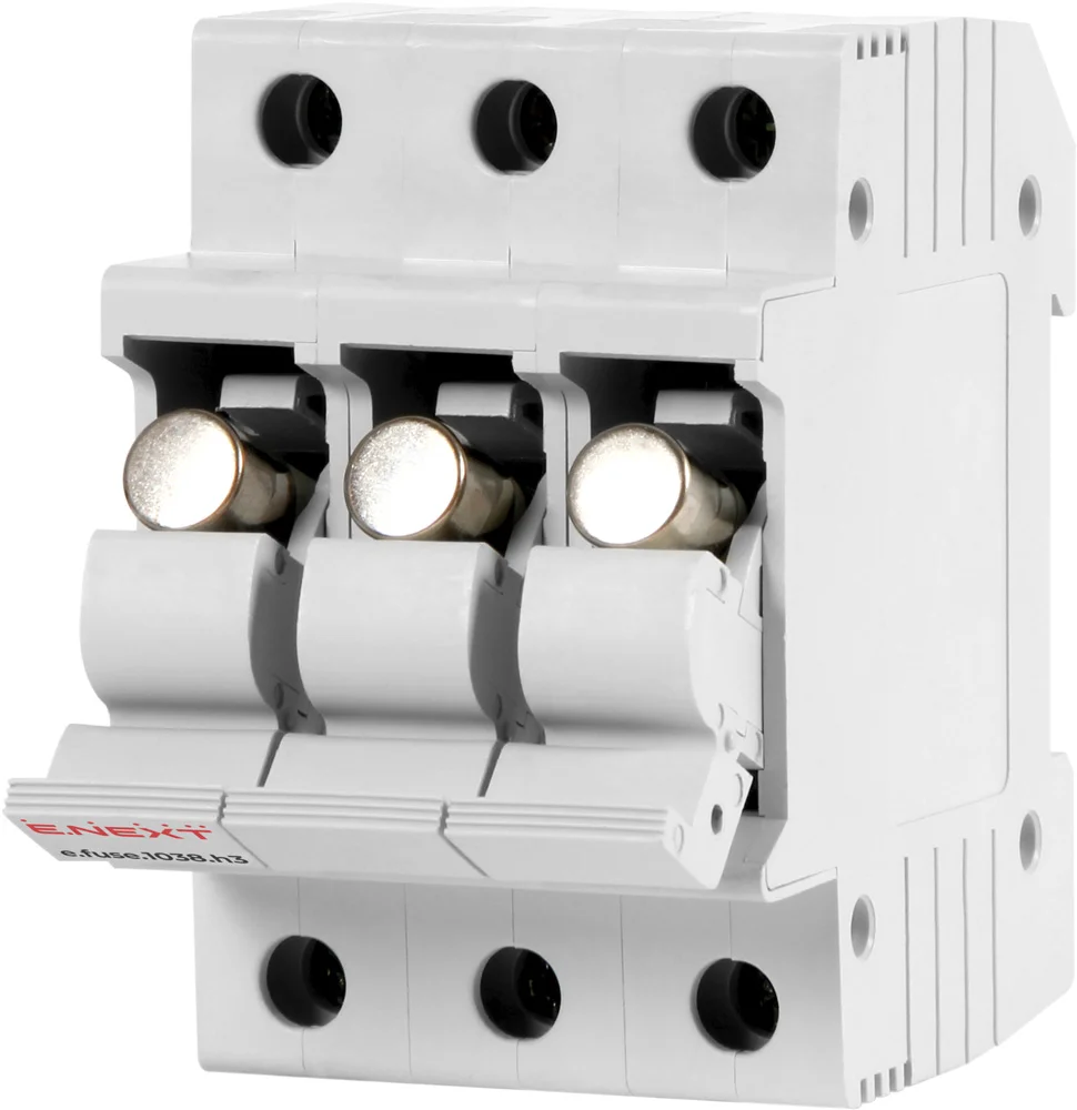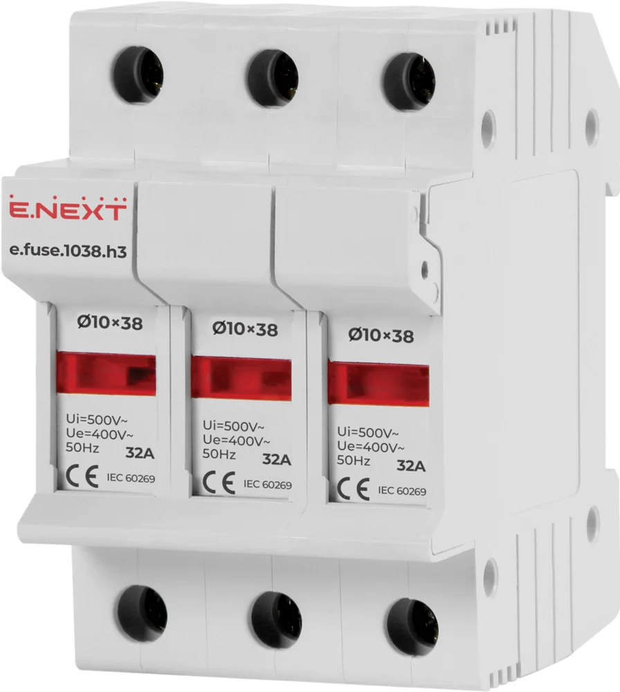 ----Держатель предохранителя на DIN-рейку e.fuse.1038.h3, для предохранителя 10х38, 3р, 32А
