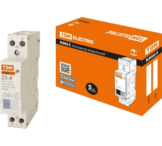 -----Контактор модульный КМ63/2-25 1НО+1НЗ 2П 25А TDM
