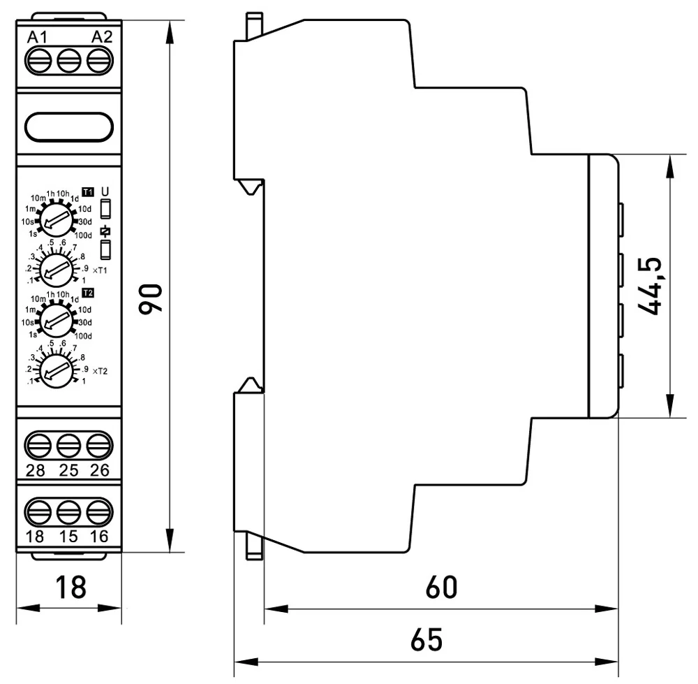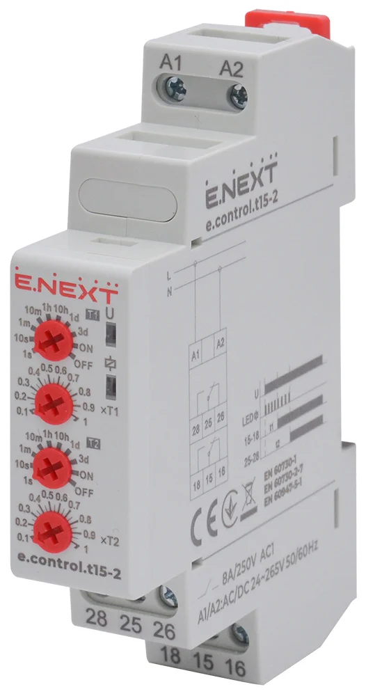 - Задержка на включение; 2 независимых канала выдержки времени.