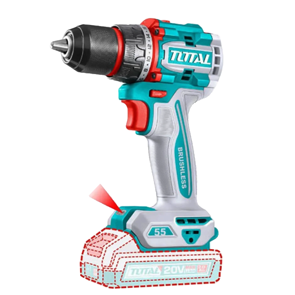 Дрель-шуруповерт с аккумулятором 20В 2Ач Brushless Total TDLI205582