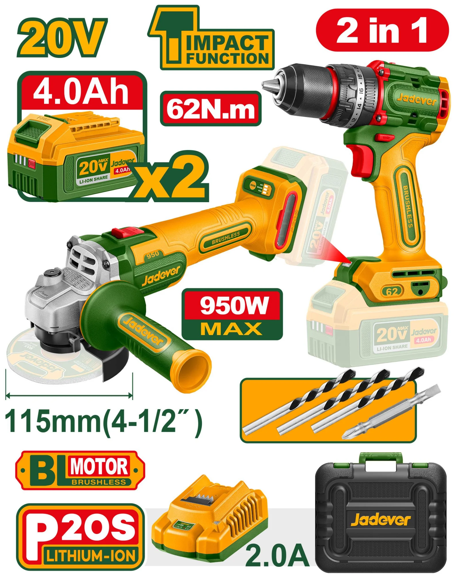 Набор Дрель и Машина шлифовальная угловая на аккумуляторе 20V TOTAL TCKLI2009