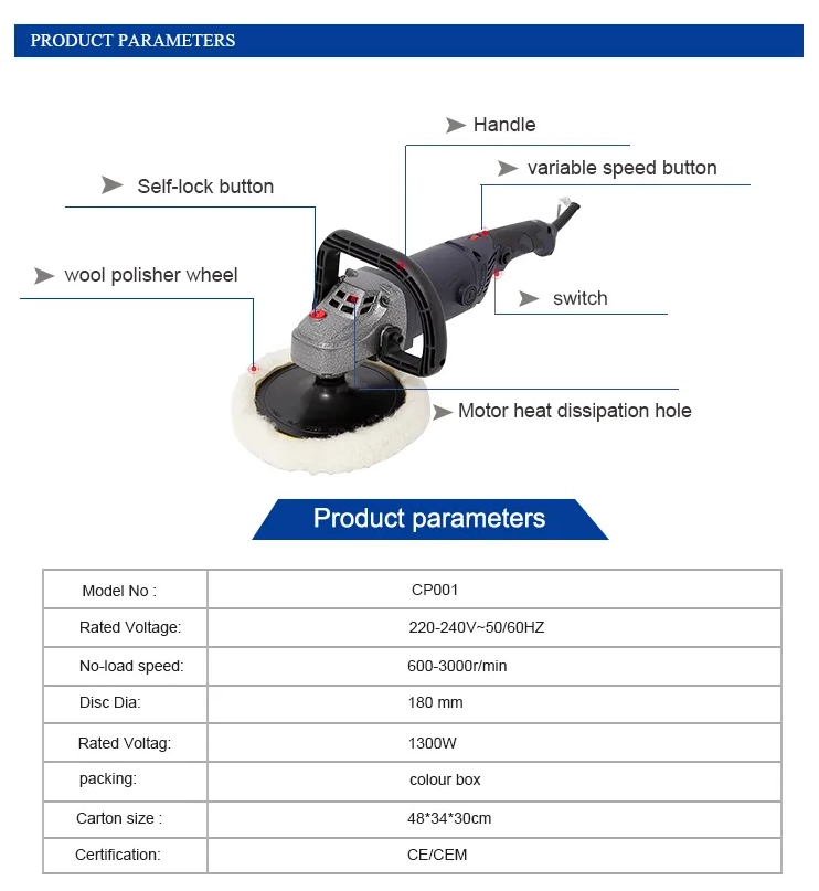 -----Полировальная машина 1300W, диаметр диска 180мм, MAKUTE