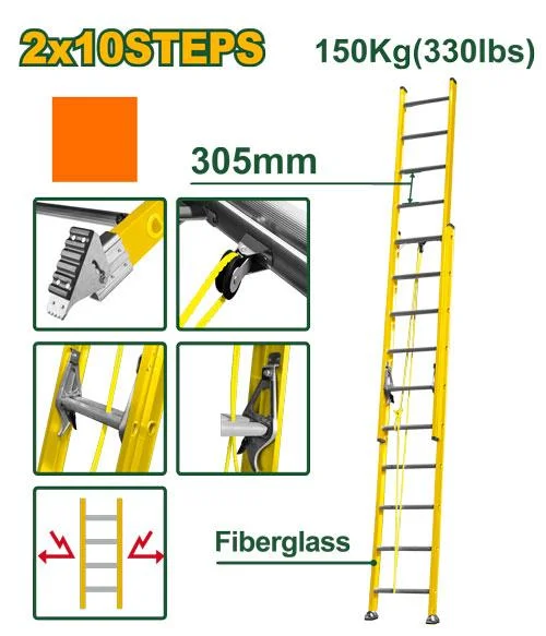----Выдвижная фиберглассовая лестница 2*10 ступеней 5,5 м JDLD0920 Jadever