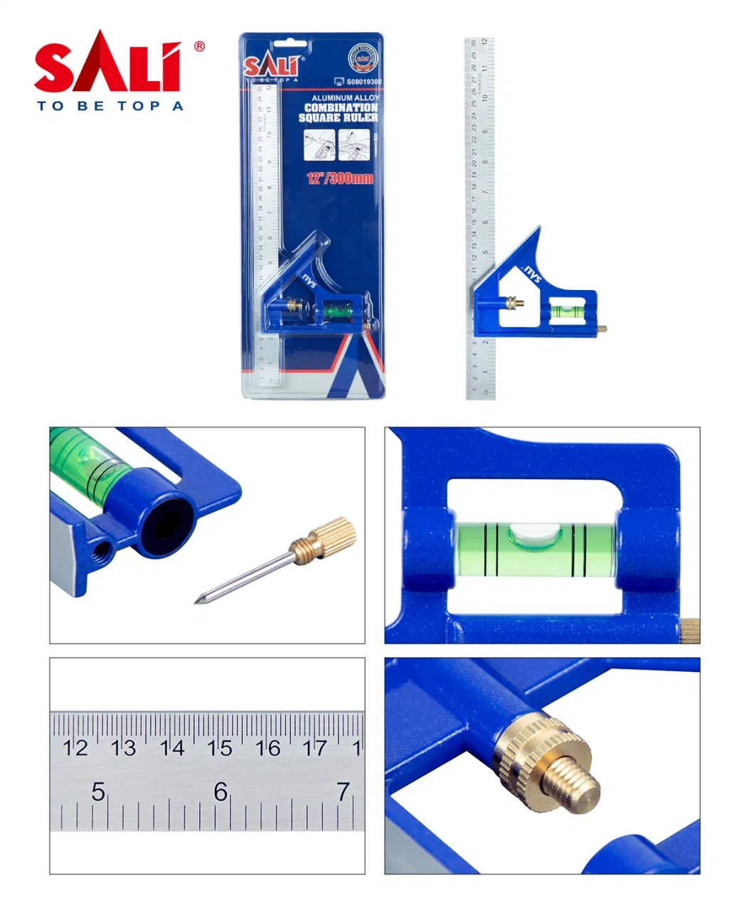 ------Стальная линейка с угольником из алюминия и пузырьковым уровнем FL-198DL, SALI
