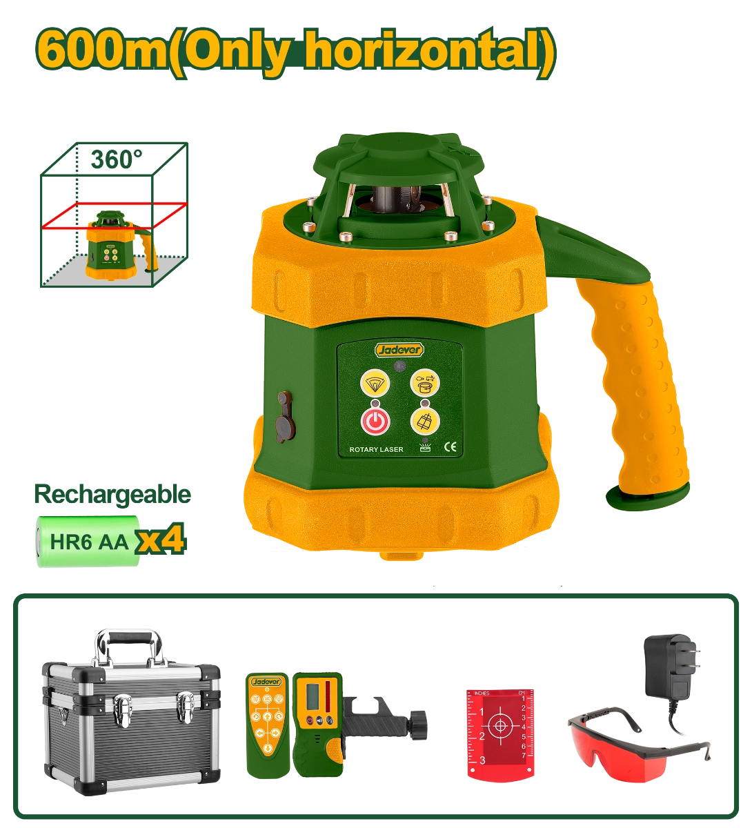 ------Ротационный лазерный уровень с самовыравниванием, горизонтальный, красный, 600м, IP54, JDLE6B01 Jadever