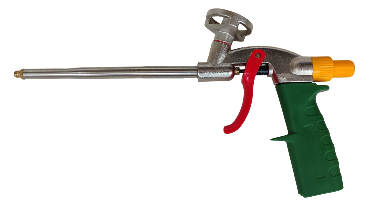 Пистолет для нанесения однокомпонентной монтажной пены из баллонов.