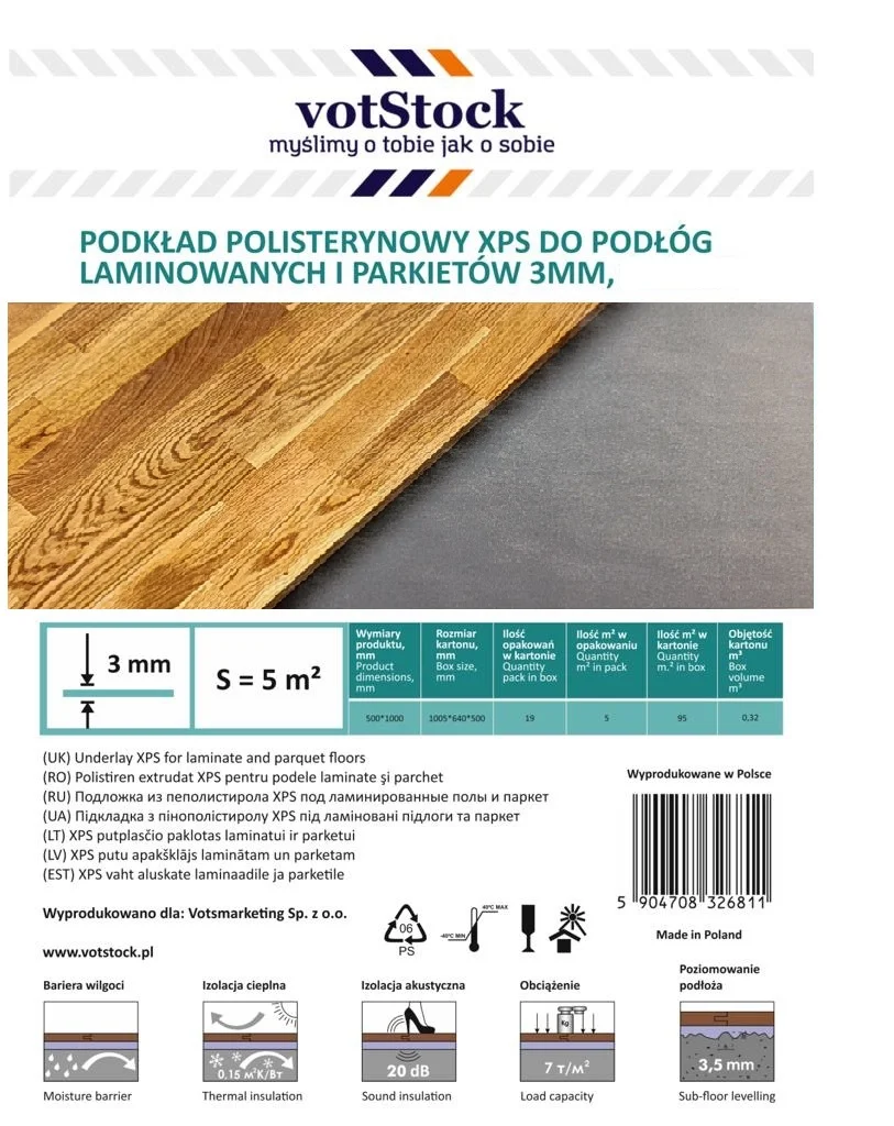 -----Подложка под ламинат votStock XPS 3 мм серая (1000*500) 5m2