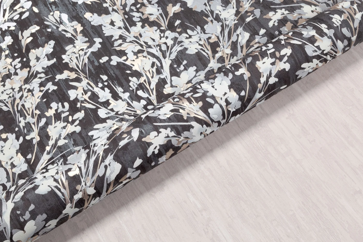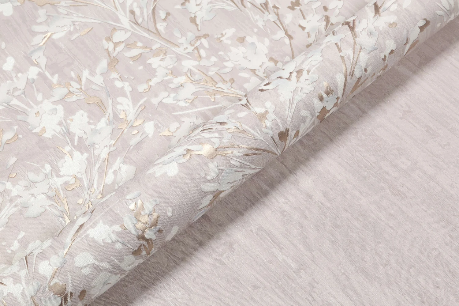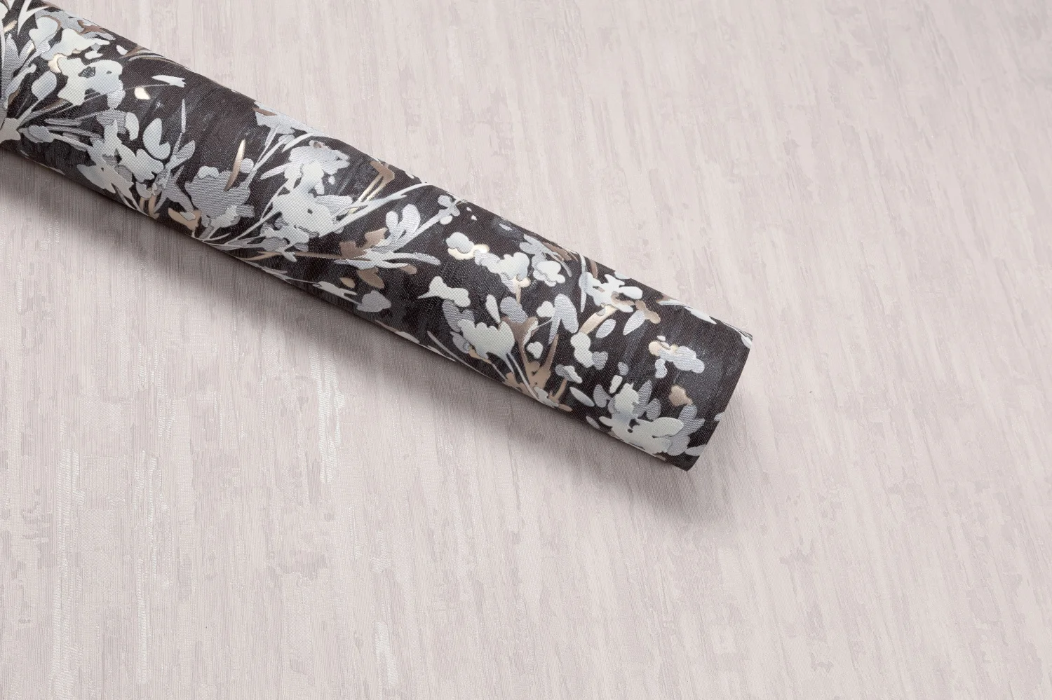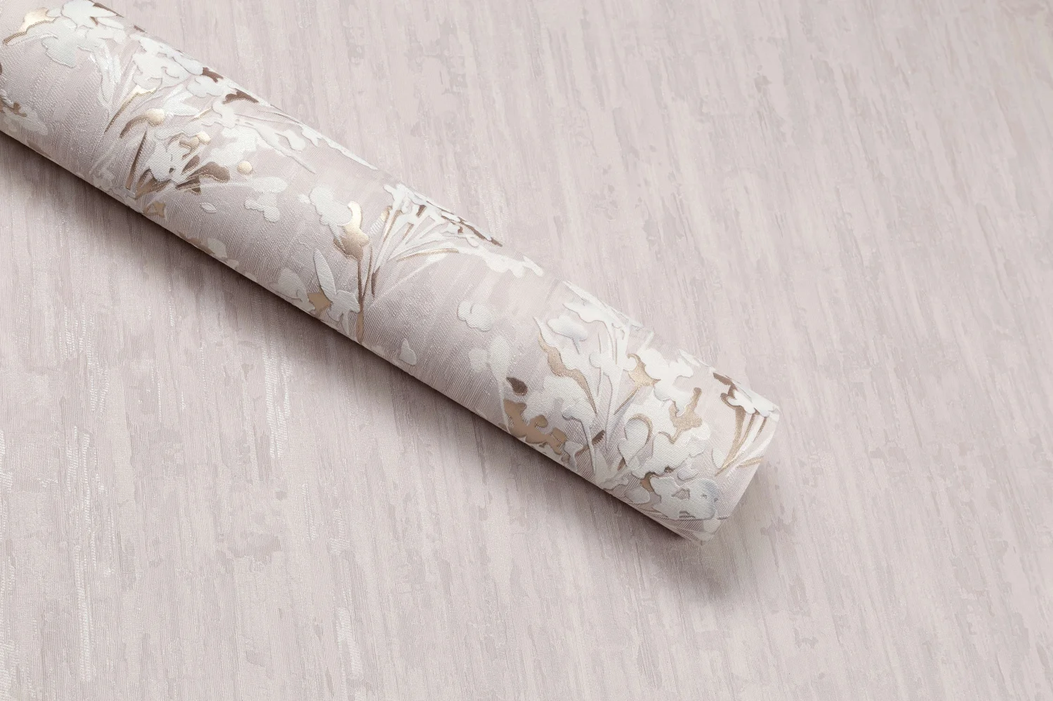 Цветочный мотив обоев выполнен в абстрактной манере. Узор словно нарисован быстрым движением кисти на искрящейся органзе. Он готов ворваться в интерьер, словно брызги шампанского, чтобы осыпать его мириадами игристых блесток.
