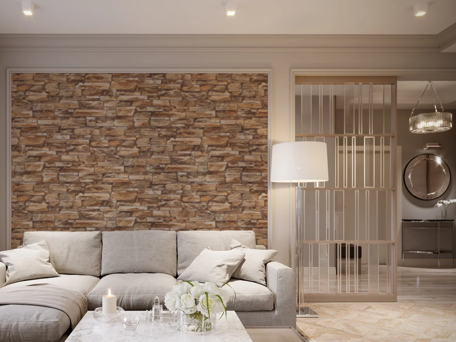 Rubble в переводе означает «булыжник». Обои в виде прочной стены, отделанной природным камнем, наполняет дом уютом. Благодаря тонко прорисованной структуре гранита, дизайн смотрится очень реалистично. Массивные валуны, аккуратно уложенные один к другому, создают чувство безопасности и гармонии.Тип помещения