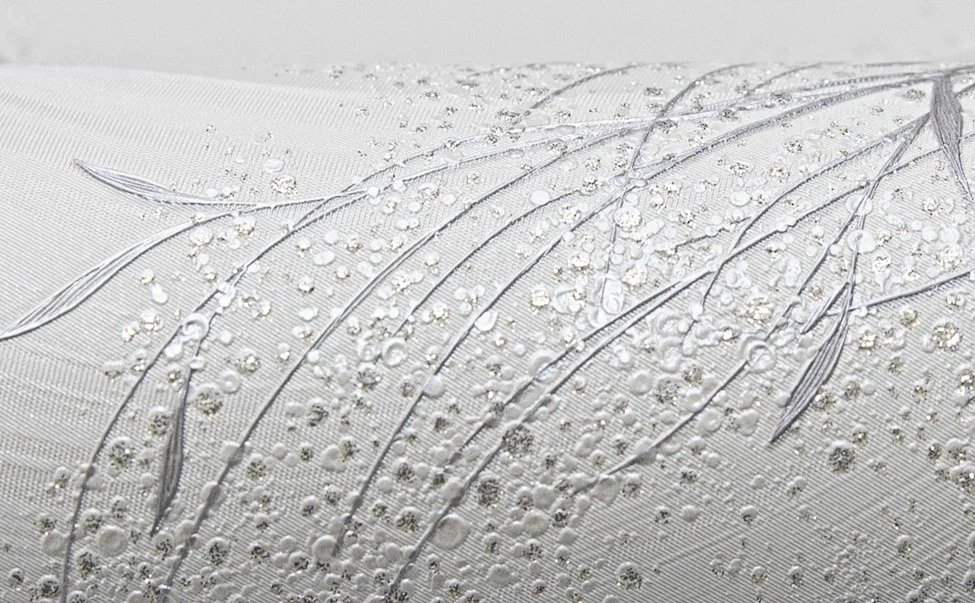 Поверхность выполнена по технологии горячего тиснения, благодаря чему рисунок выглядит объёмным и выразительным. Материал устойчив к солнечному свету, не выгорает и не теряет привлекательности со временем. Флизелиновая основа облегчает поклейку, скрывает неровности и обеспечивает прочное прилегание к стене.