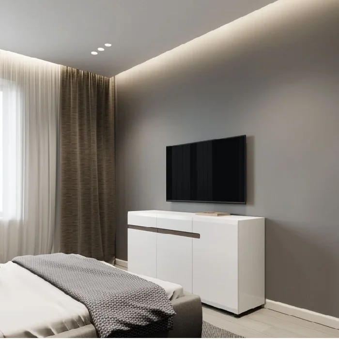 - Эстетика и функциональность – теневой зазор подчеркивает геометрию потолка, создавая современный дизайн.