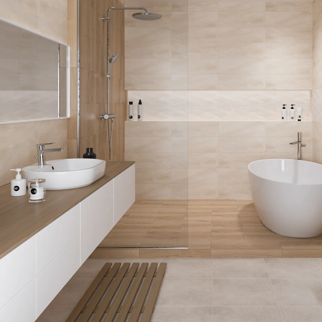 Плитка керамогранит HERBER CREAM 420x420 мм, матовая, бежевый, бетон