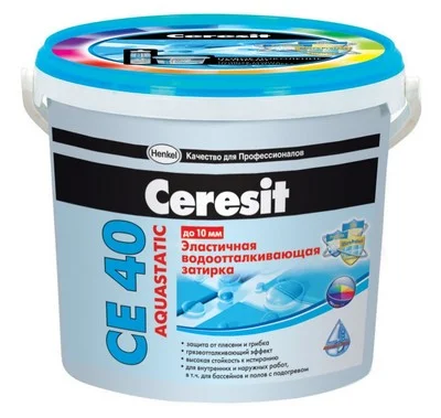 Ceresit CE 40 - эта эластичная водоотталкивающая затирка для швов на основе цемента и полимеров. Применяется для затирки швов керамической плитки, мраморной плитки и плитки из натурального камня на вертикальных или горизонтальных поверхностях, как внутри, так и снаружи. Она водонепроницаема поэтому можно её использовать в помещениях с повышенной влажностью, на полах с подогревом, на балконах и террасах. Обеспечивает хорошее покрытие, имея стабильный и равномерный цвет, который долго сохраняет свой внешний вид. Наносится на стыки толщиной до 8 мм, предварительно очищенные от грязи и пыли. Затирка Ceresit CE 40 устойчива к плесени и грязи, поэтому срок её службы будет значительно больше.