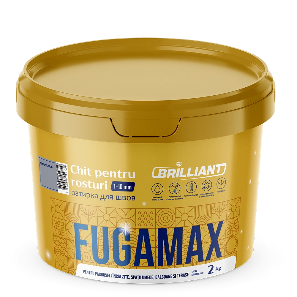 Затирка Fugamax Brilliant 1-10мм - сухая смесь на цементной основе для затирки внутренних и наружных стеновых и напольных плиточных покрытий (керамической плитки и клинкера всех видов,керамогранита,стеклянной и другой мозаики, плитки из натураль- ного и искусственного камня) в жилых, коммерческих и общественных зданиях. Подходит для заполнения швов шириной и глубиной до 10 мм, а также для напольной плитки в помещениях с подогревом пола. Отличается высокой износостойко- стью и хорошей водоотталкивающей способностью. FUGAMAX не пригодна для затирки плиточных покрытий, от которых строго требуется кислото- или щелочестойкость (плиточные покрытия промышленных объектов, ремесленных мастерских, лабораторий и т. п.), а также не соответствует требованиям, предъявляемым к затиркам для заполнения деформационных швов, облицовки плиткой бассейнов и запол- нения швов между печами и другими элементами печей для обжига керамики.