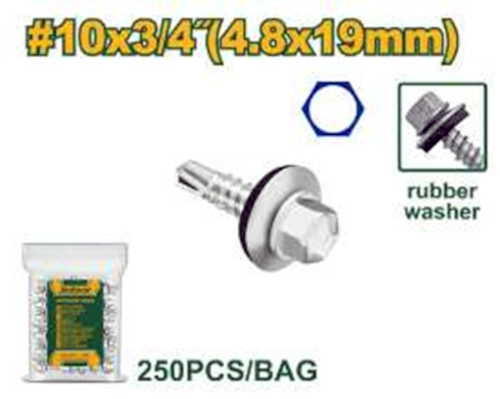 ----Саморез с шестигранной головкой, сверлом и двойной шайбой (резина/металл) 4,8*19мм (250шт в пакете); Jadever