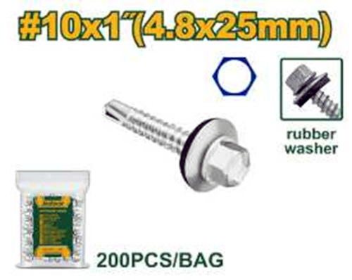 ----Саморез с шестигранной головкой, сверлом и двойной шайбой (резина/металл) 4,8*25мм (200шт в пакете); Jadever