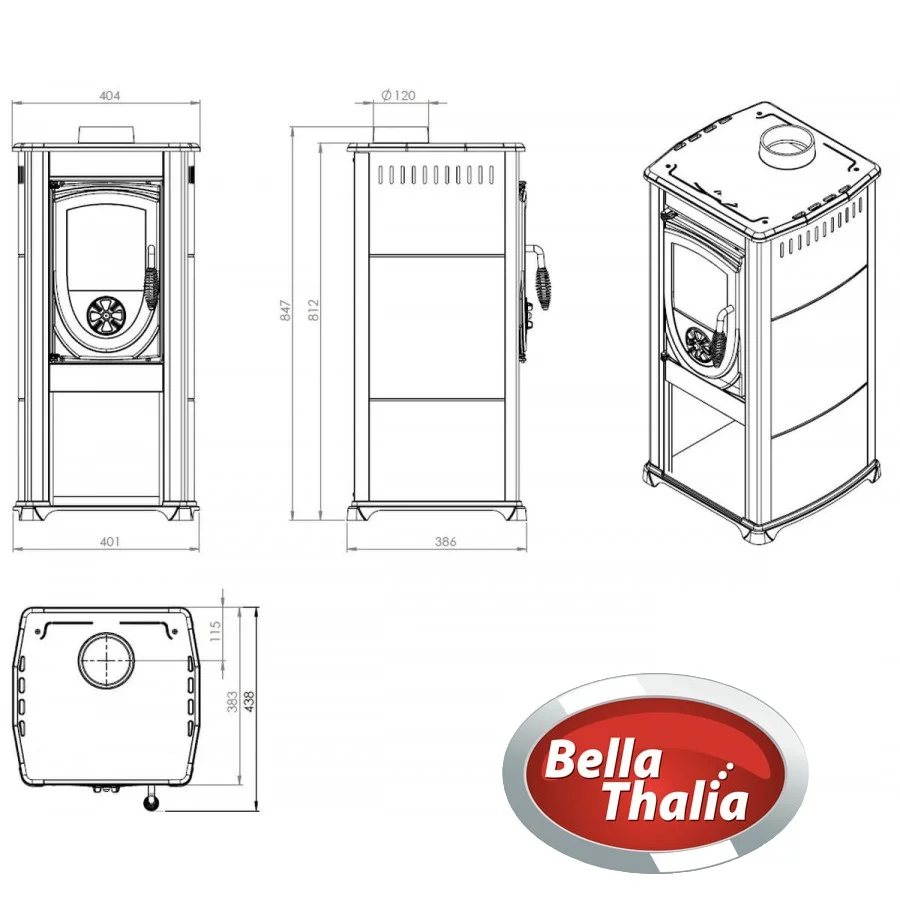 Модель печи Bella Thalia Okta оснащена системой "чистое стекло", Специальная заслонка вверху печи направляет потоки горячего воздуха, что не дает возможности сажи и копоти осесть на стекле дверцы.