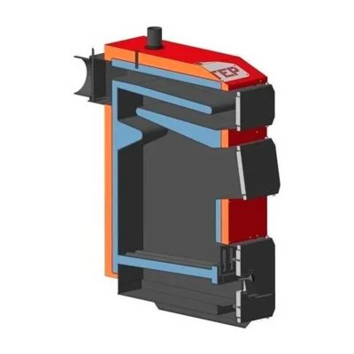 Топка котла: Твердотопливные котлы Praktik имеют значительную для своей мощности емкость топки, что обеспечивает возможность длительной работы котла на одной загрузке топлива. Площадь поверхности теплообмена в котле увеличена за счет наличия дополнительной полки на задней стенке теплообменника и водяной колосниковой решетки