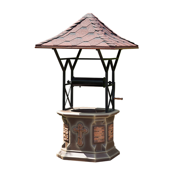 Модель ''Cruce K-3” это черный колодец с крышкой, на передний стороне которого изображен православный крест и каменные вставки на остальных сторонах изделия. Изготовлен из высококачественных материалов, с применением цемента марки М550 фирмы LAFARGE и сварного металлического каркаса.