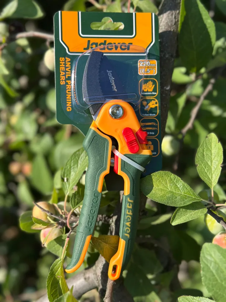 - Секатор с наковальней JADEVER JDPA1E04 — это высококачественный инструмент, предназначенный для обрезки и формирования растений. С длиной 220 мм (8,5 дюймов) он идеально подходит как для профессиональных садоводов, так и для любителей.