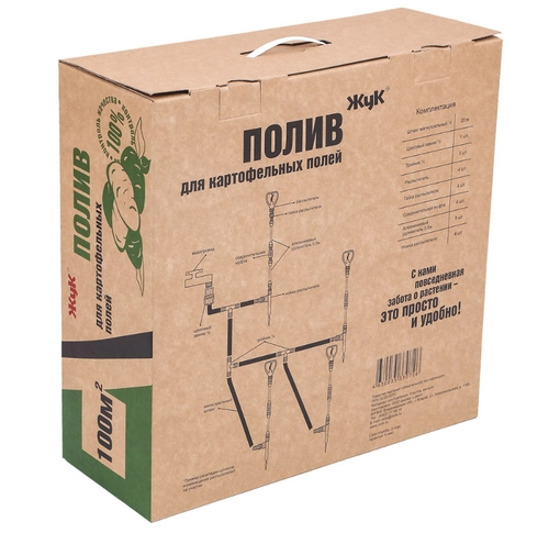 Конструкция системы полива облегчит труд на огороде или ферме площадью до 100 м2. Оборудование обеспечивает своевременную подачу воды к клубням. Шланг оснащен трех-лепестковыми распылителями, которые экономно и равномерно распределяют поток. Больше нет необходимости перетаскивать шланги в грязи, повреждая при этом ботву. Исключается зависимость от графика полива и времени суток. Такой способ полива непременно отразится на урожайности и состоянии растений. Риск повреждения или засорения сведен к минимуму, но это не исключает дополнения системы, по желанию, фильтром предварительной очистки. При правильном уходе и соблюдении правил эксплуатации данное оборудование можно использовать около 10 лет. Система может быть использована не только на картофельных плантациях.