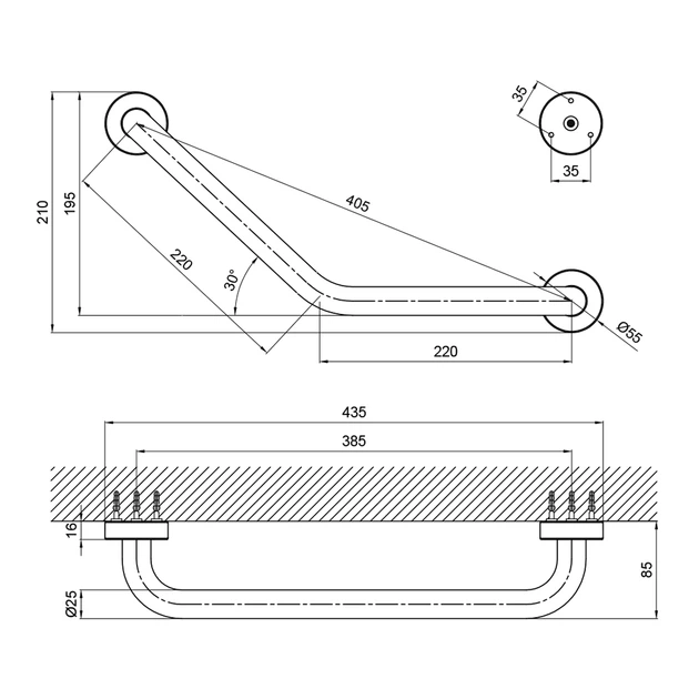 Благодаря настенному монтажу и комплекту креплений поручень легко устанавливается на любой стене. Его изогнутая округлая форма придает эстетичности, делая вашу ванную комнату не только безопасной, но и стильной.