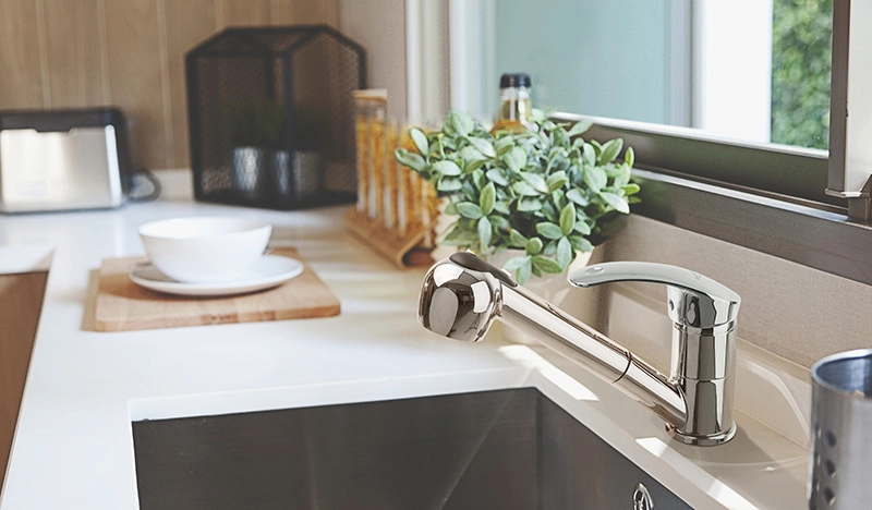 Кухонный смеситель с выдвижным изливом значительно повышает удобство использования.