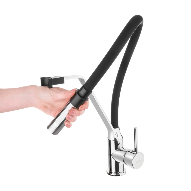 Кухонный смеситель с поворотным, подвижным изливом и магнитным держателем — это предложение для тех, кто хочет чувствовать себя хозяином на своей кухне. Система быстрой установки, водосберегающий аэратор и два типа напора воды удовлетворят даже самых требовательных пользователей. Доступен в 4 модных цветах: черном, белом, бежевом и сером.