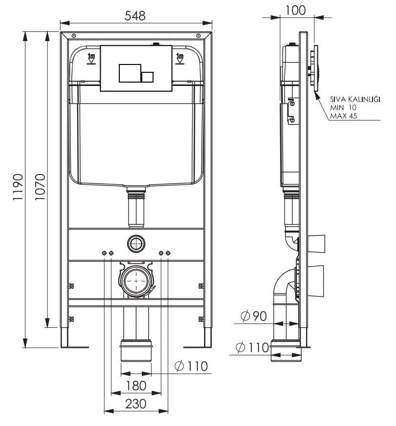 -Инсталяции скрытые + глянцевая белая кнопка "NKP" Турция