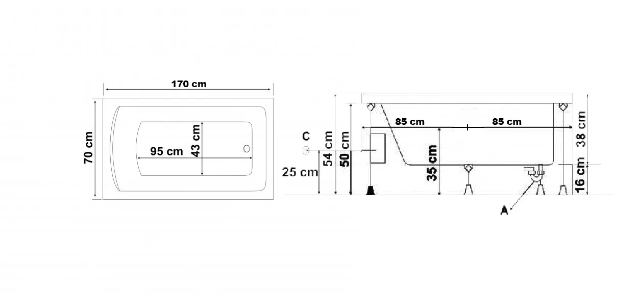 Прямоугольная ванна Milas 70*170см SG Stelle Banyo Турция