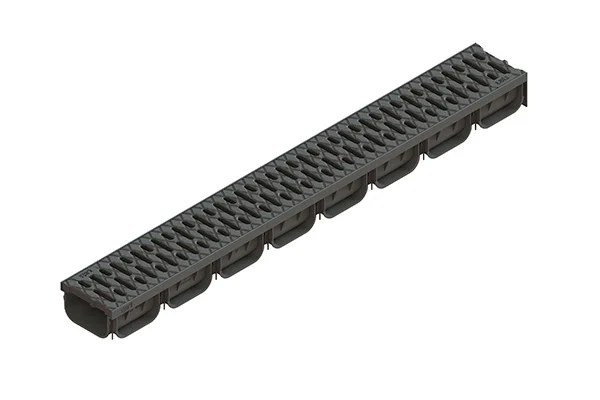 Гладкая поверхность пластикового лотка способствует беспрепятственному отводу вод. Решетка обеспечивает безопасность при передвижении, а также препятствует попаданию крупных предметов, способных нарушить эффективную работу ливневой канализации. Решетка надежно фиксируется посредством Click-системы, не требующей использования шурупов. Подобная система позволяет легко прочистить пластиковый лоток от попадающих в него листьев и грязи.