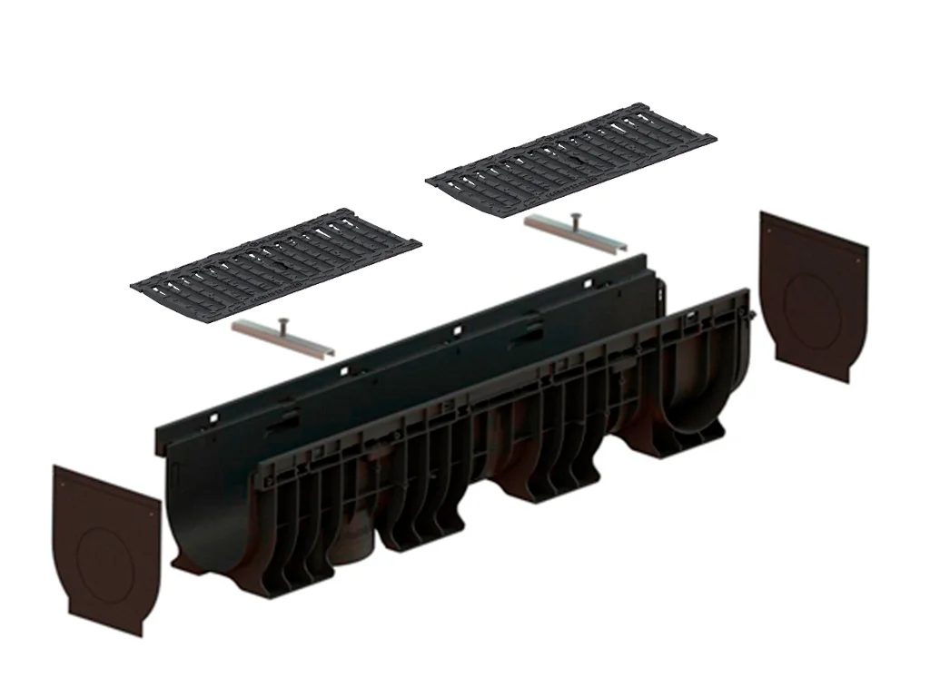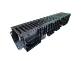 Лоток водоотводный пластиковый BASE DN150 H200 с решетками щелевыми из высокопрочного чугуна, класс нагрузки С250 (1000x206xH200мм)