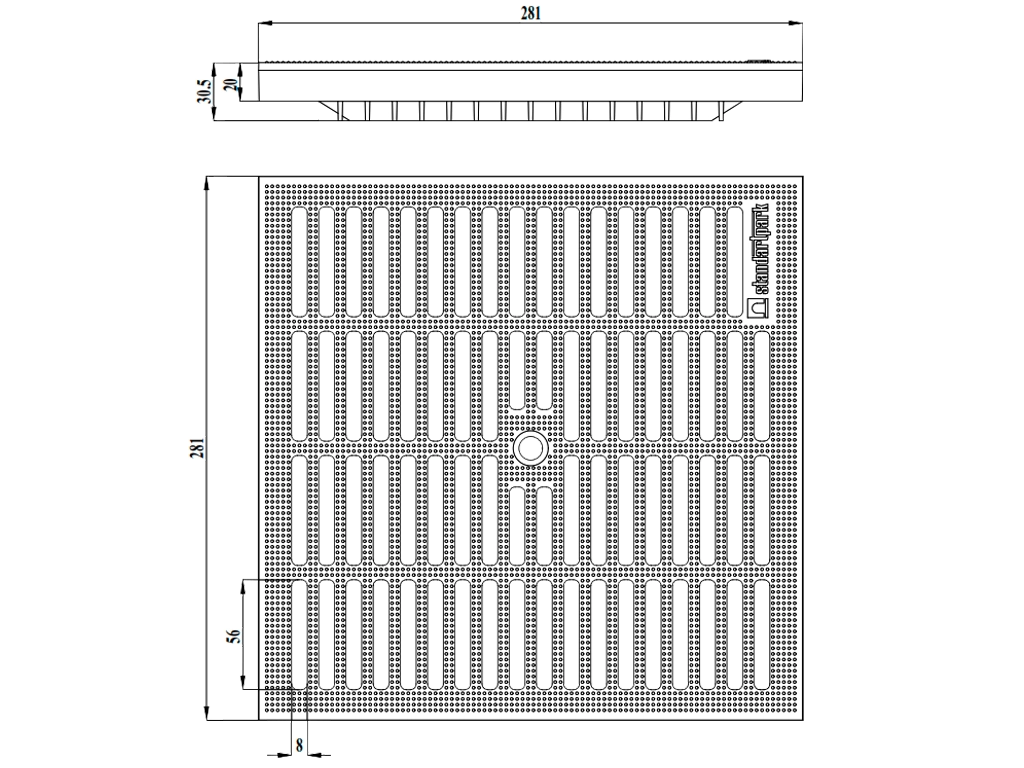 Решетка PP BASIC изготовлена из полипропилена и совместима с дождеприемником 300x300 мм, но может использоваться и отдельно.