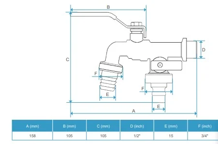 Сервисный кран с двумя выходами HYDRO-S, M x держатель шланга x резьба - 1/2"x3/4"x3/4"