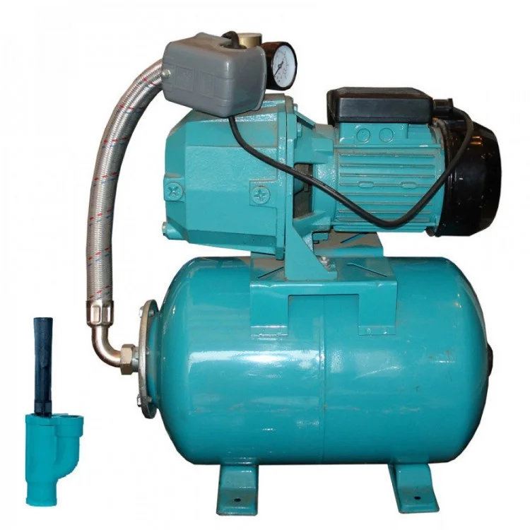 Насосная станция Omnigena DP-355A с баком 24 л. Предназначена для автоматического водоснабжения индивидуальных жилых домов из скважин или колодцев с зеркалом воды глубже 8 м (до 18–19 м). Для глубокого всасывания применяется погружное устройство VENTURI и двухтрубная система. Рабочее колесо насоса изготовлено из латунного сплава.