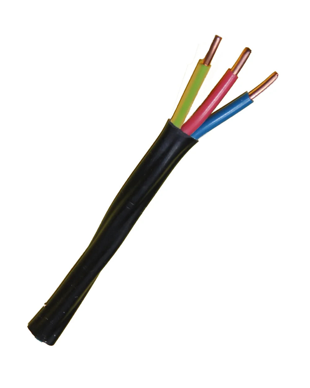 Электрический силовой кабель с однопроволочными медными жилами, изоляция и оболочка из ПВХ, не поддерживает распространение горения.