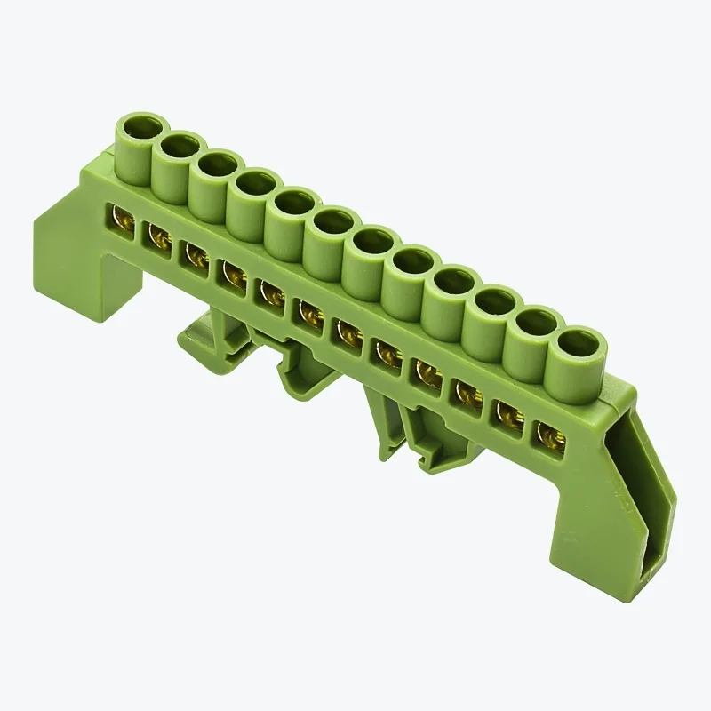 -----Шина N нулевая 6х9мм c изолятором на DIN рейку на 12 отверстий зелёная MegaWatt