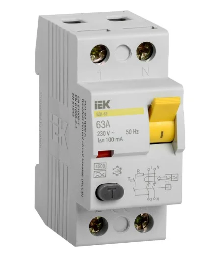 -----Выключатель дифференциальный (УЗО) ВД1-63 2Р 63А 100мА тип А IEK