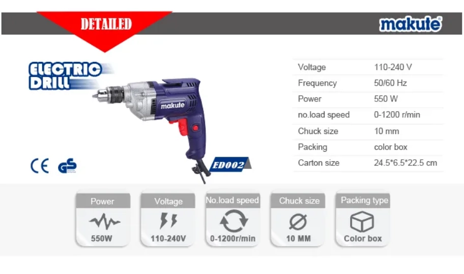 Дрель электрическая 10 мм, 220-240V, 550W, 0-1200 об/мин, MiniStyle Makute