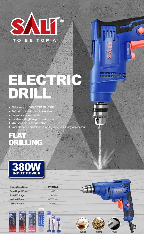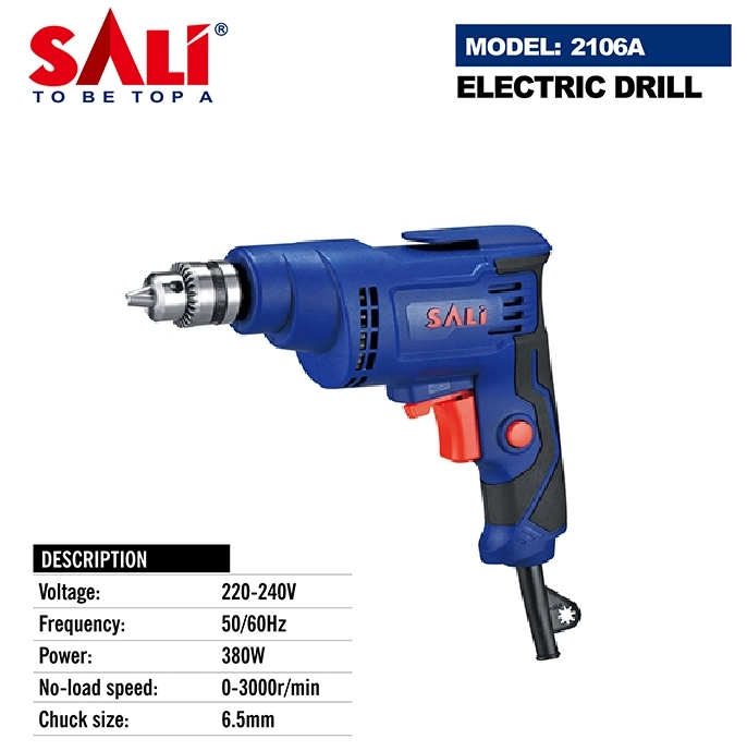 Дрель электрическая 380 Вт, 0-3000об/мин, патрон 6,5мм под ключ, Sali 2106А