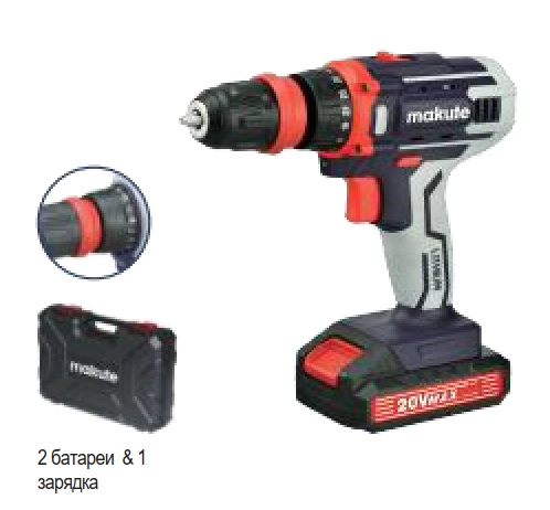 Шуруповерт на аккумуляторе c фиксатором вала и быстрой сменой патрона 20V, 0-450/0-1450rpm; 10mm, CD227LX-2B, Makute