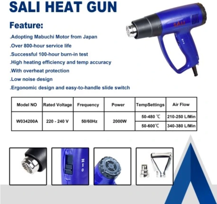 -Фен термический строительный 220-240V 2000W 600C°, SALI W034200AДрели и шуруповертыПерфораторыАккумуляторыШлифмашины вибрационные, полировальныеКраскопультыШлифмашины угловые (УШМ)РубанкиФрезерыБетономешалкиПистолеты строительныеСабельные пилыГайковертыМини-станкиНаборы электроинструментовРеноваторы и комплектующиеПилы дисковые Отбойные молоткиМиксерыЛобзикиПилы цепные
