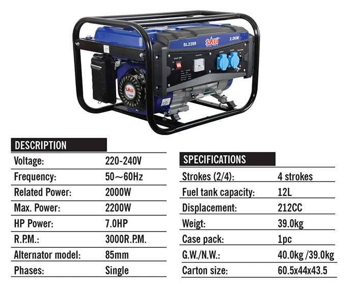 Генератор на бензине, мощность - 2200W, SALI SL2200