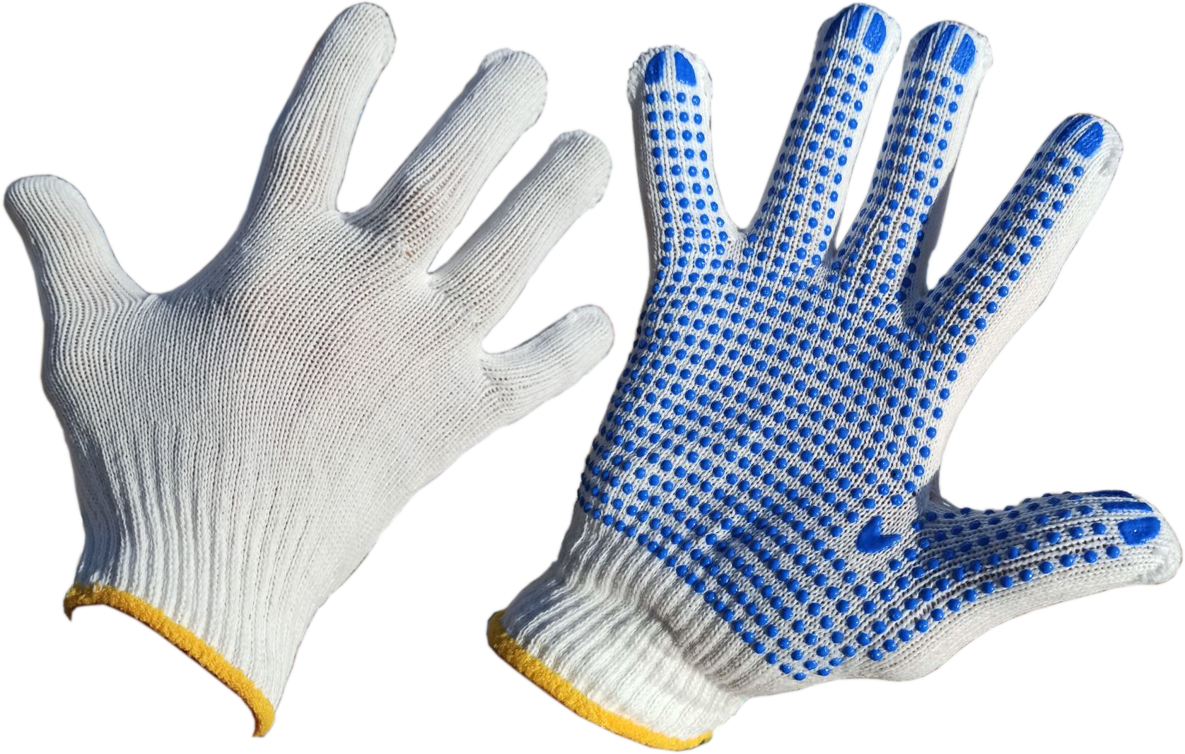-----Перчатки трикотажные с анти-скользящим покрытием из ПВХ Белый/голубой